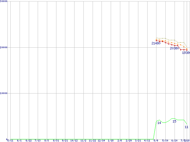 | Phenom X4 9550 (2.2GHz,L2 512KB×4,L3 2MB)の価格推移 | | | (2007年5月11日~2008年7月18日) |