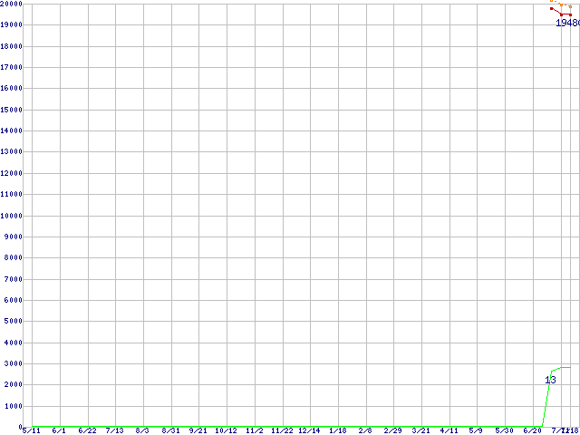 | Phenom X4 9150e (1.8GHz,L2 512KB×4,L3 2MB)の価格推移 | | | (2007年5月11日~2008年7月18日) |