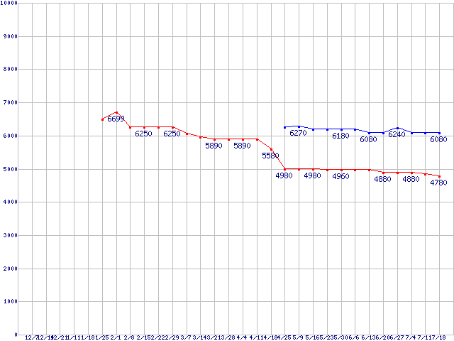 LGA775 (FSB 800MHz,L2 512KB,Dual Core)の最安値推移