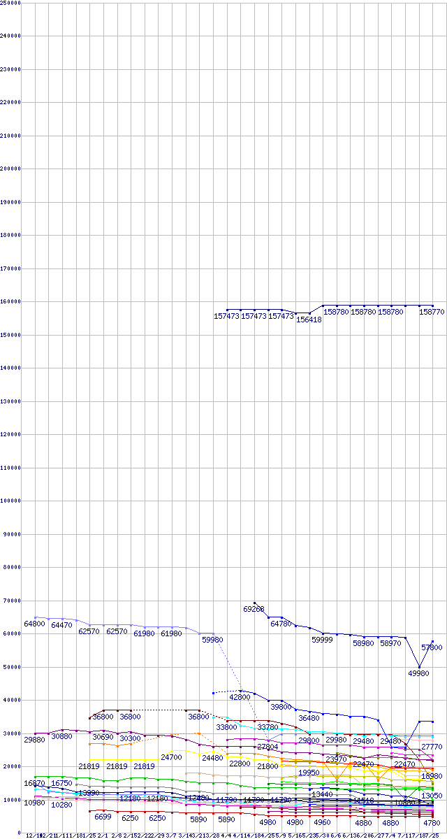| CPU主要製品の最安値推移 | | | (2007年12月14日~2008年7月25日) |
