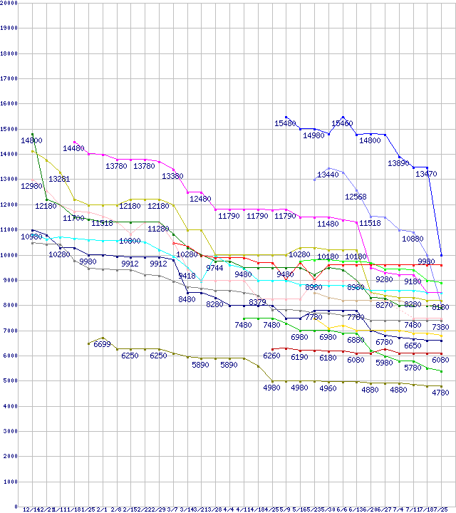 ※製品名をクリックすると個別のグラフを表示します ※点線部は販売店が確認できなかった、または調査データがないことを示します |