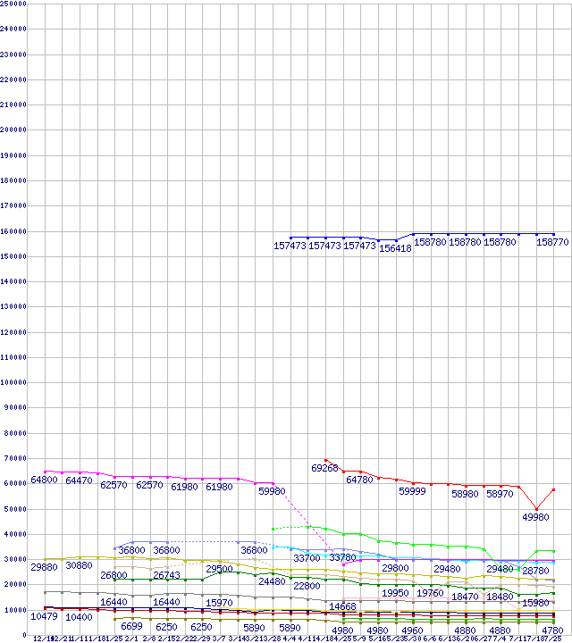 ※製品名をクリックすると個別のグラフを表示します ※点線部は販売店が確認できなかった、または調査データがないことを示します |