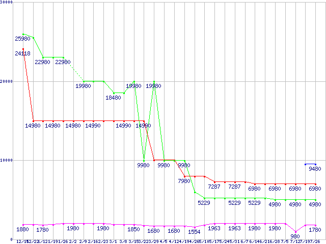 1GBモジュールの最安値推移
