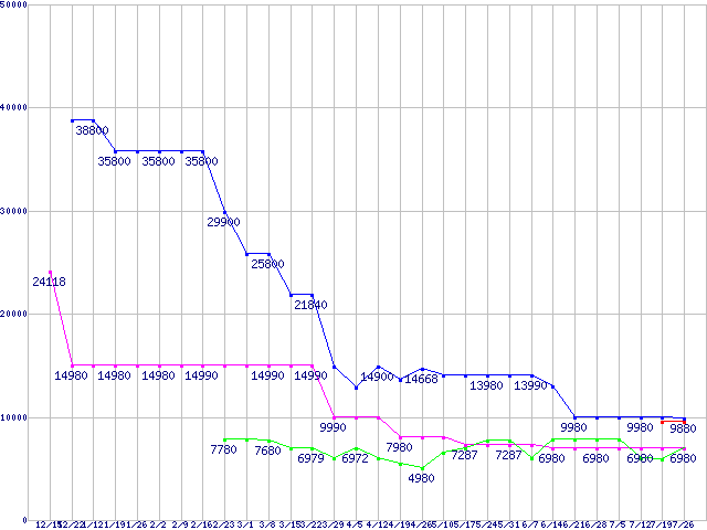 メモリ主要製品(最安値1万円以上)の最安値推移