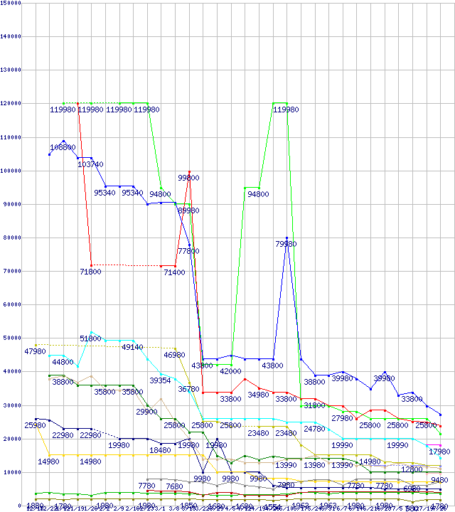 メモリ主要製品の最安値推移