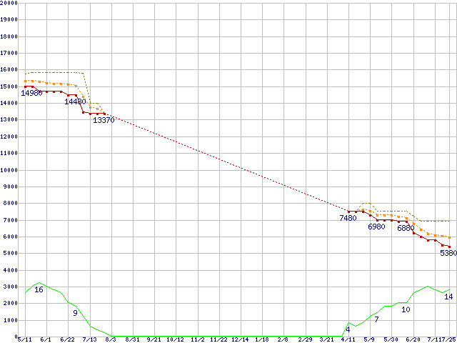 | Athlon X2 4600 (2.4GHz,L2 512KB×2)の価格推移 | | | (2007年5月11日~2008年7月25日) |