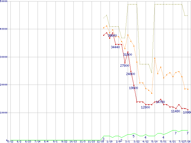 PC3-8500(DDR3-1066) DDR3 SDRAM DIMMの最安値推移