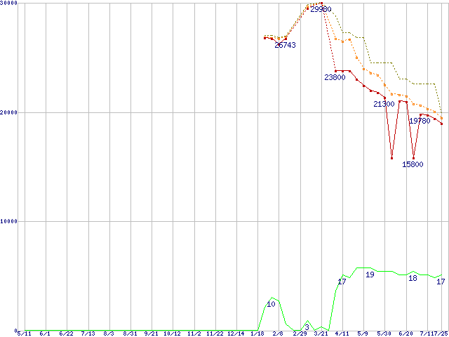 | Core 2 Duo E8400 (3GHz,L2 6MB)の価格推移 | | | (2007年5月11日~2008年7月25日) |