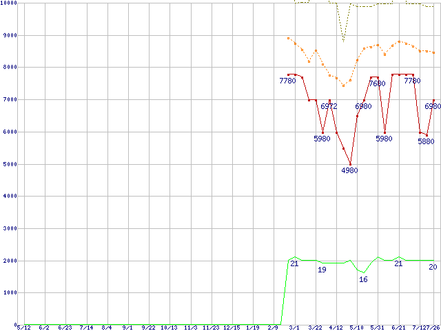 PC2-6400(DDR2-800) DDR2 SDRAM DIMMの最安値推移