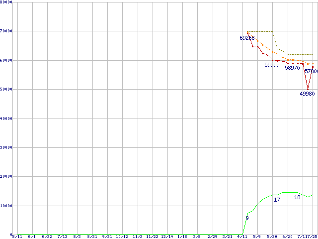 | Core 2 Quad Q9550 (2.83GHz,L2 6MB×2)の価格推移 | | | (2007年5月11日~2008年7月25日) |