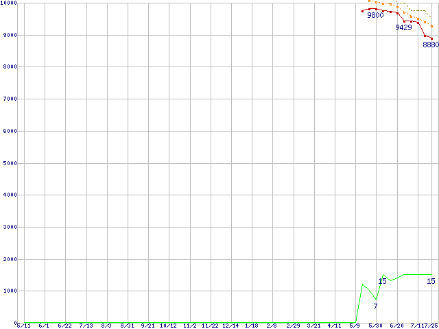 | Athlon X2 4850e (2.5GHz,L2 512KB×2)の価格推移 | | | (2007年5月11日~2008年7月25日) |