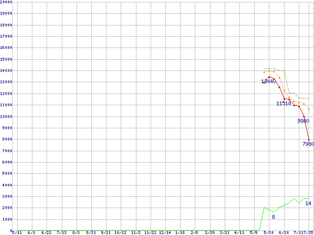 | Athlon X2 5600 (2.9GHz,L2 512KB×2)の価格推移 | | | (2007年5月11日~2008年7月25日) |