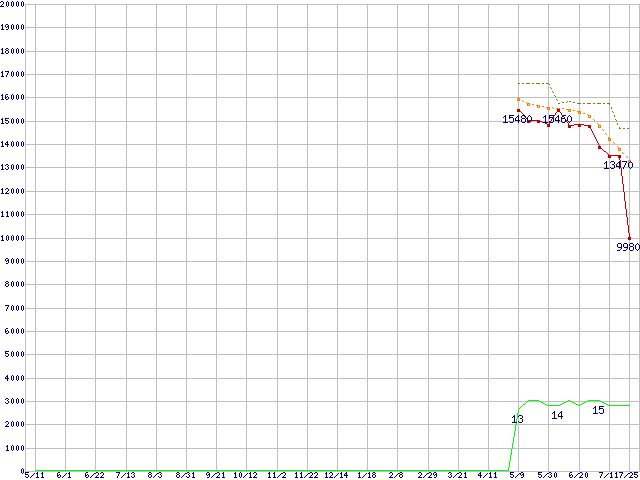 | Phenom X3 8450 (2.1GHz,L2 512KB×3,L3 2MB)の価格推移 | | | (2007年5月11日~2008年7月25日) |