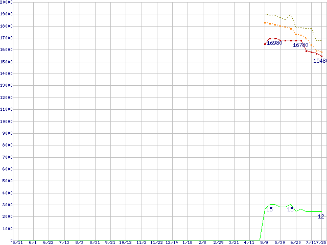 | Phenom X3 8650 (2.3GHz,L2 512KB×3,L3 2MB)の価格推移 | | | (2007年5月11日~2008年7月25日) |