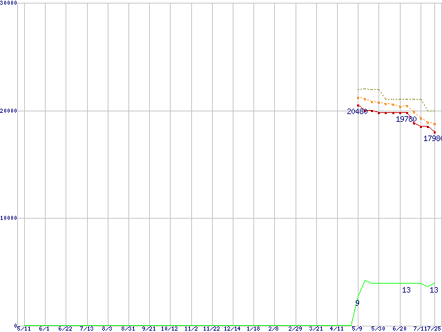 | Phenom X3 8750 (2.4GHz,L2 512KB×3,L3 2MB)の価格推移 | | | (2007年5月11日~2008年7月25日) |