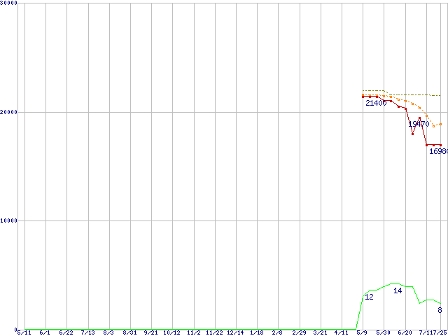 | Phenom X4 9100e (1.8GHz,L2 512KB×4,L3 2MB)の価格推移 | | | (2007年5月11日~2008年7月25日) |