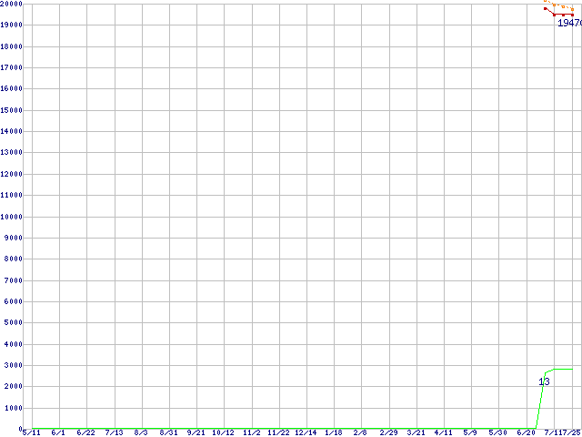 | Phenom X4 9150e (1.8GHz,L2 512KB×4,L3 2MB)の価格推移 | | | (2007年5月11日~2008年7月25日) |