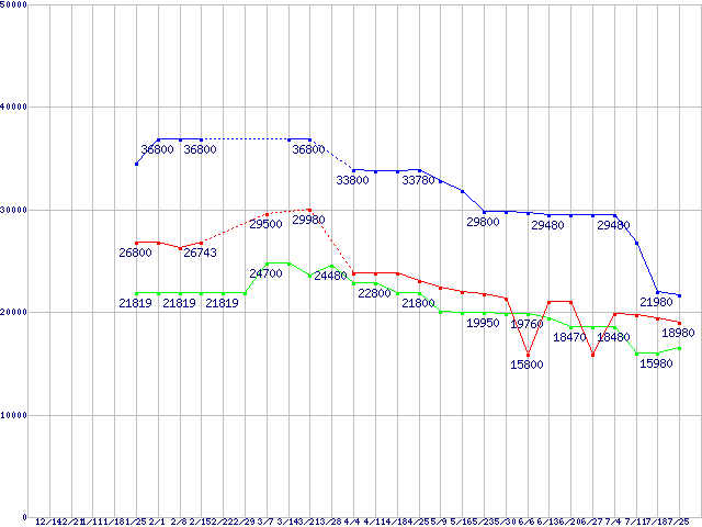 LGA775 (FSB 1333MHz,Dual Core,TDP 65W)の最安値推移
