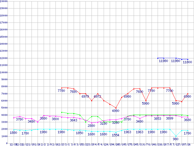 PC2-6400(DDR2-800) DDR2 SDRAM DIMMの最安値推移
