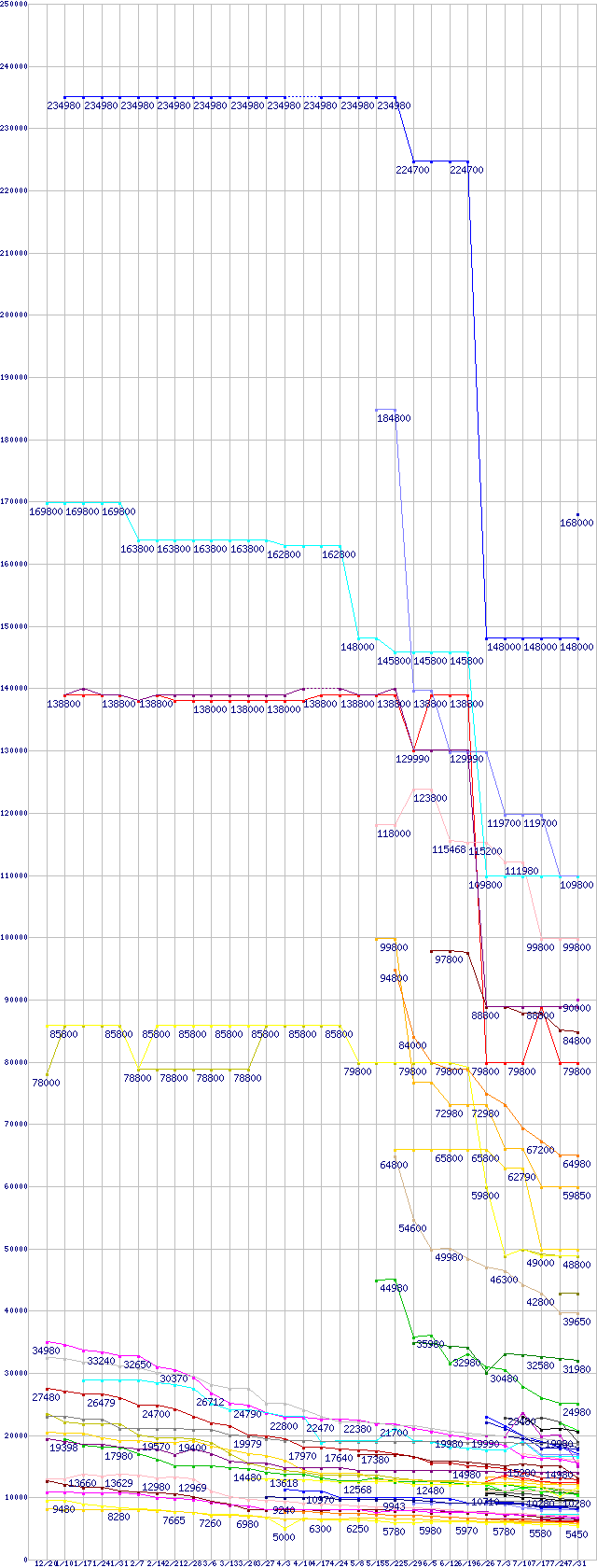 [前グラフ]:WD Scorpio (5400rpm,3Gb/s,2.5インチ)の最安値推移