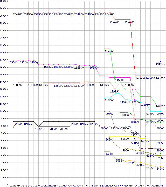 | HDD/SSD 30GB~80GB未満の最安値推移 | | | (2007年12月20日~2008年7月31日) |