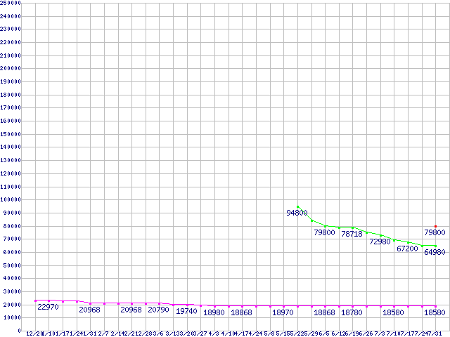 HDD/SSD 30GB~80GB未満の最安値推移