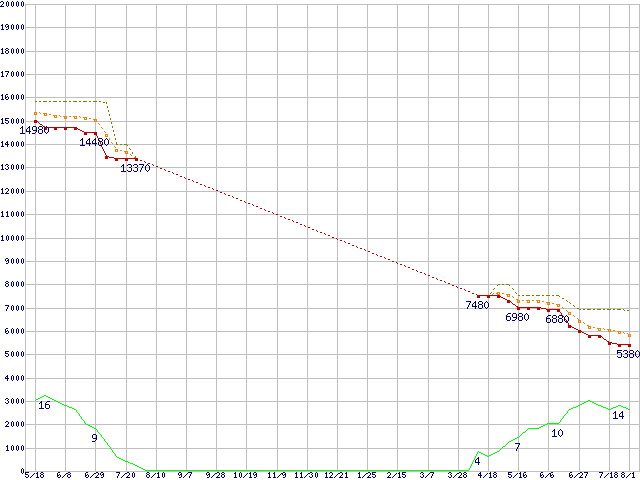 | Athlon X2 4600 (2.4GHz,L2 512KB×2)の価格推移 | | | (2007年5月18日~2008年8月1日) |