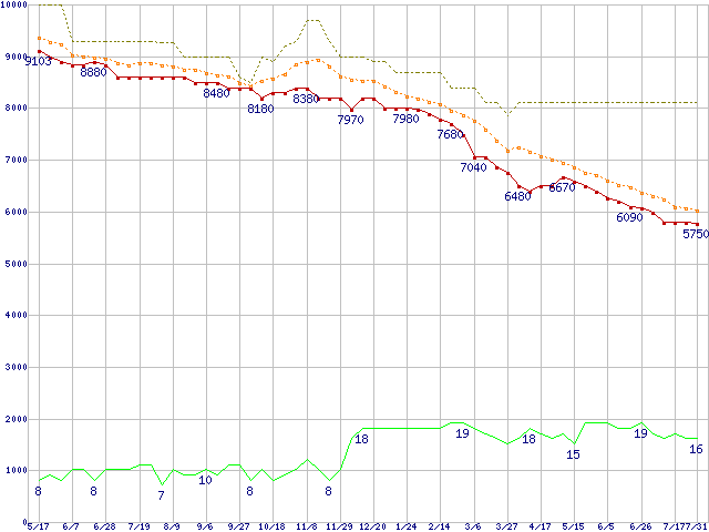 | WD3200AAKS (320GB)の価格推移 | | | (2007年5月17日~2008年7月31日) |