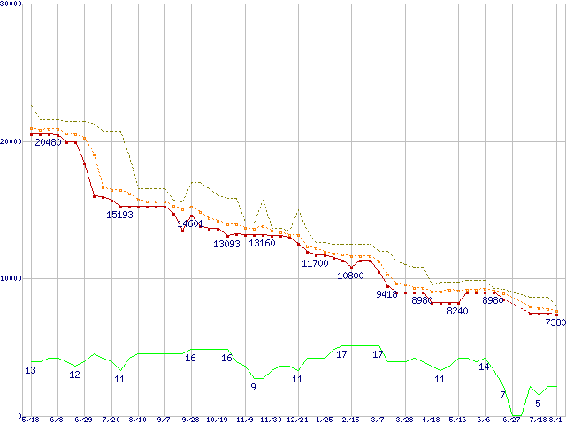 | Athlon 64 X2 5000+ (2.6GHz,L2 512KB×2)の価格推移 | | | (2007年5月18日~2008年8月1日) |
