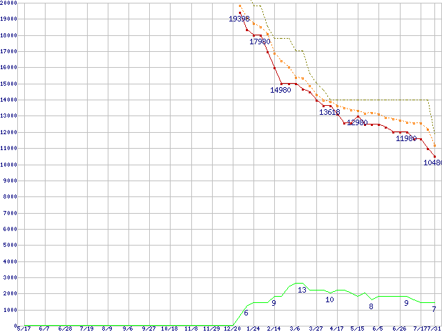 | WD7500AACS (750GB,16MB)の価格推移 | | | (2007年5月17日~2008年7月31日) |