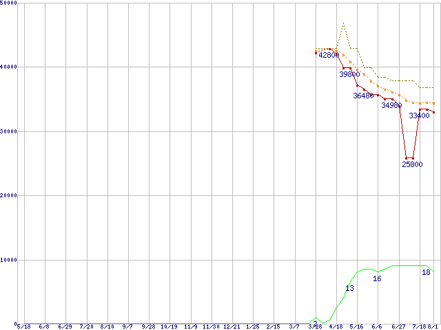 | Core 2 Quad Q9450 (2.66GHz,L2 6MB×2)の価格推移 | | | (2007年5月18日~2008年8月1日) |