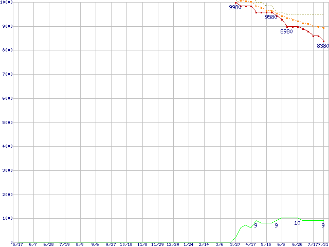 | HD642JJ (640GB,16MB)の価格推移 | | | (2007年5月17日~2008年7月31日) |