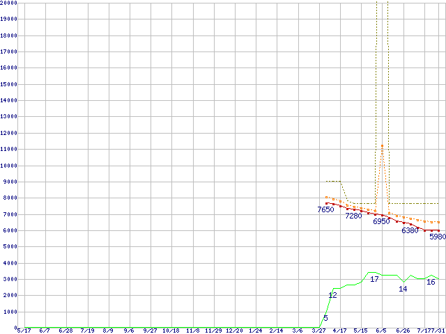 | ST3320613AS (320GB,16MB)の価格推移 | | | (2007年5月17日~2008年7月31日) |
