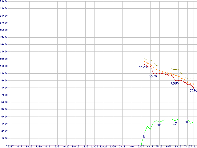 | WD6400AAKS (640GB)の価格推移 | | | (2007年5月17日~2008年7月31日) |