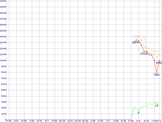 | Athlon X2 5600 (2.9GHz,L2 512KB×2)の価格推移 | | | (2007年5月18日~2008年8月1日) |