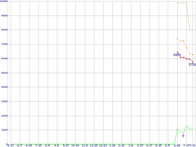 | HTS543216L9A300 (160GB,8MB)の価格推移 | | | (2007年5月17日~2008年7月31日) |