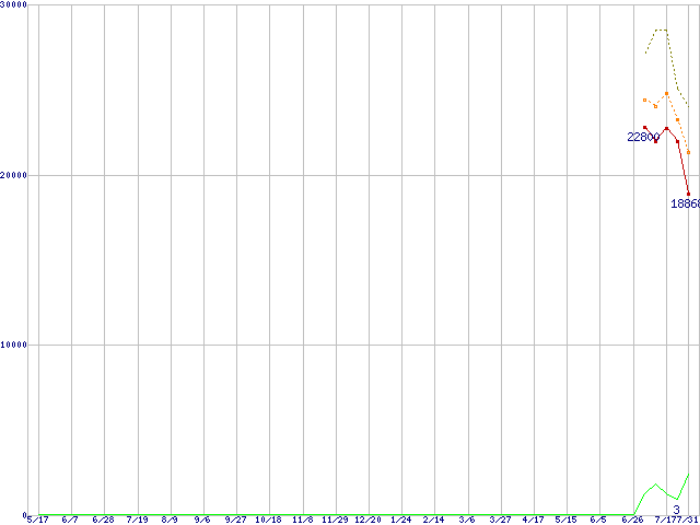 | HTS723232L9A360 (320GB,16MB)の価格推移 | | | (2007年5月17日~2008年7月31日) |