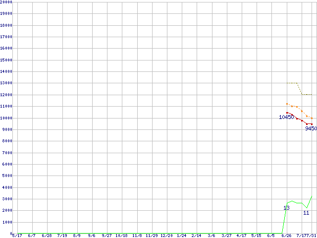 | WD3200BEVT (320GB,8MB)の価格推移 | | | (2007年5月17日~2008年7月31日) |