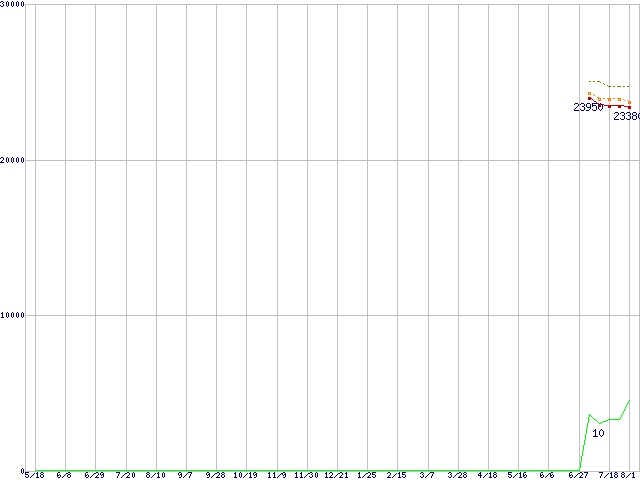 | Phenom X4 9350e (2.0GHz,L2 512KB×4,L3 2MB)の価格推移 | | | (2007年5月18日~2008年8月1日) |