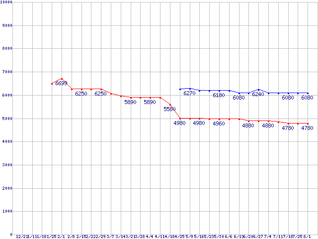 Socket AM2 (HyperTransport,Dual Core,TDP 65W)の最安値推移