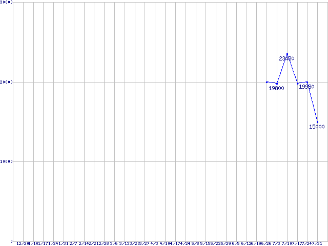 | Travelstar 5K500 (5400rpm,3Gb/s,2.5インチ,12.5mm)の最安値推移 | | | (2007年12月20日~2008年7月31日) |