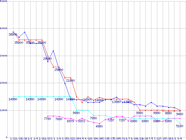 メモリ主要製品(最安値5千円~1万円未満)の最安値推移