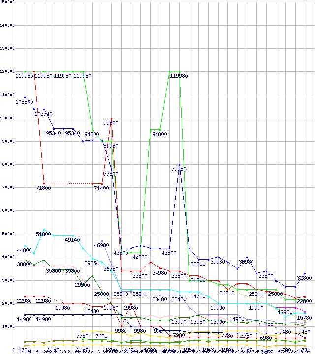 メモリ主要製品の最安値推移