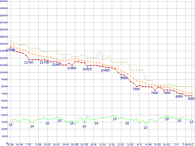 | WD5000AAKS (500GB)の価格推移 | | | (2007年5月24日~2008年8月7日) |