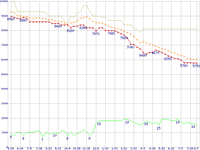 | WD3200AAKS (320GB)の価格推移 | | | (2007年5月24日~2008年8月7日) |