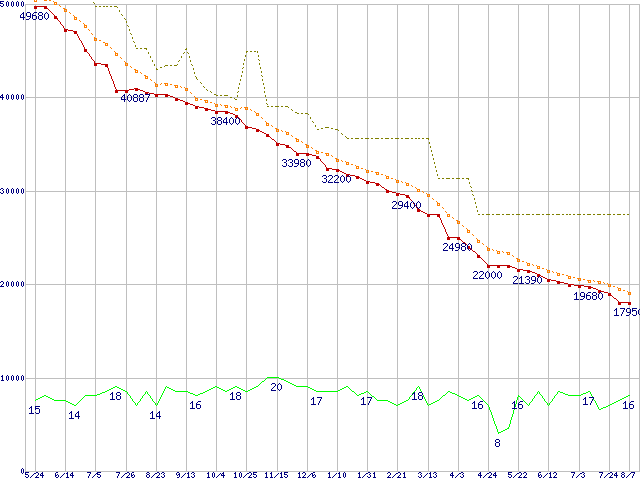 | HDS721010KLA330 (1TB,32MB)の価格推移 | | | (2007年5月24日~2008年8月7日) |