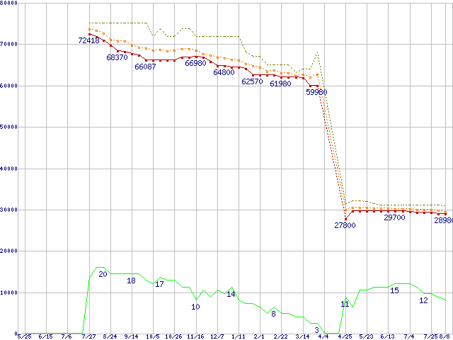 | Core 2 Quad Q6700 (2.66GHz,L2 4MB×2)の価格推移 | | | (2007年5月25日~2008年8月8日) |