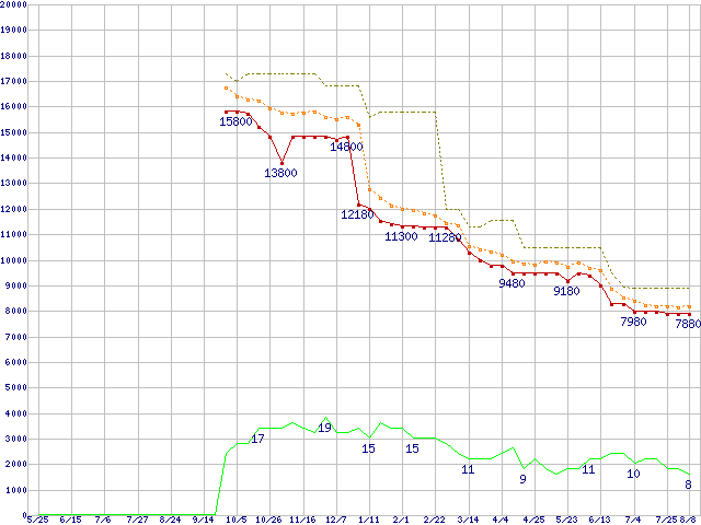 | Athlon 64 X2 5000+ Black Edition (2.6GHz,L2 512KB×2)の価格推移 | | | (2007年5月25日~2008年8月8日) |
