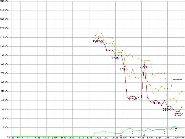 PC3-12800(DDR3-1600) DDR3 SDRAM DIMMの最安値推移