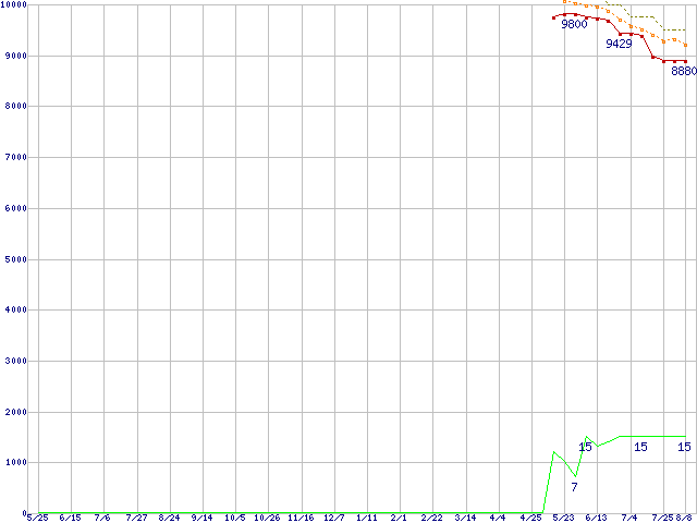 | Athlon X2 4850e (2.5GHz,L2 512KB×2)の価格推移 | | | (2007年5月25日~2008年8月8日) |